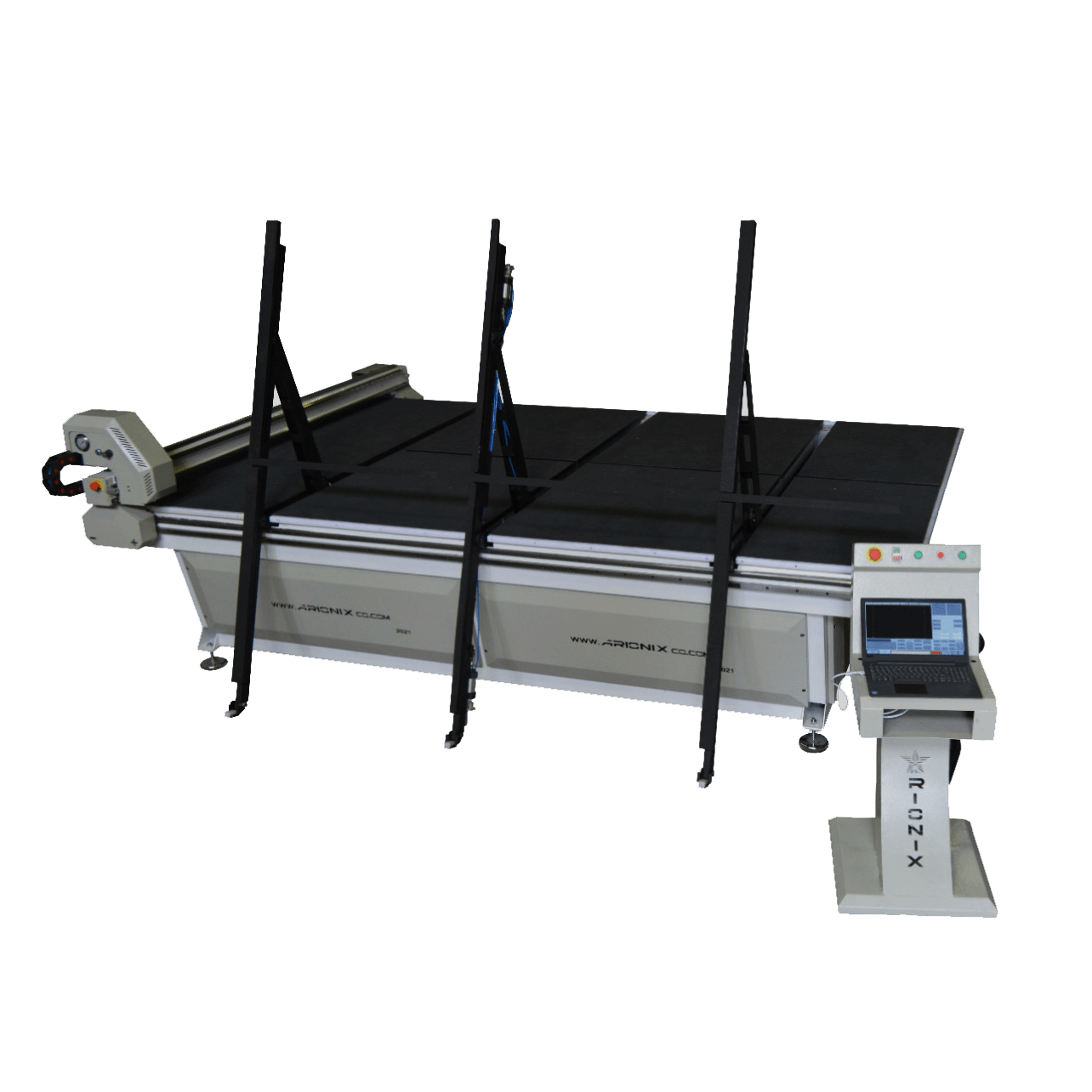 The Arionix CNC Glass Cutting Table, with its unique design, enables precise cutting of various types of glass and mirrors in different sizes and thicknesses.This machine is equipped with:Mechanical system for sheet loading and positioning